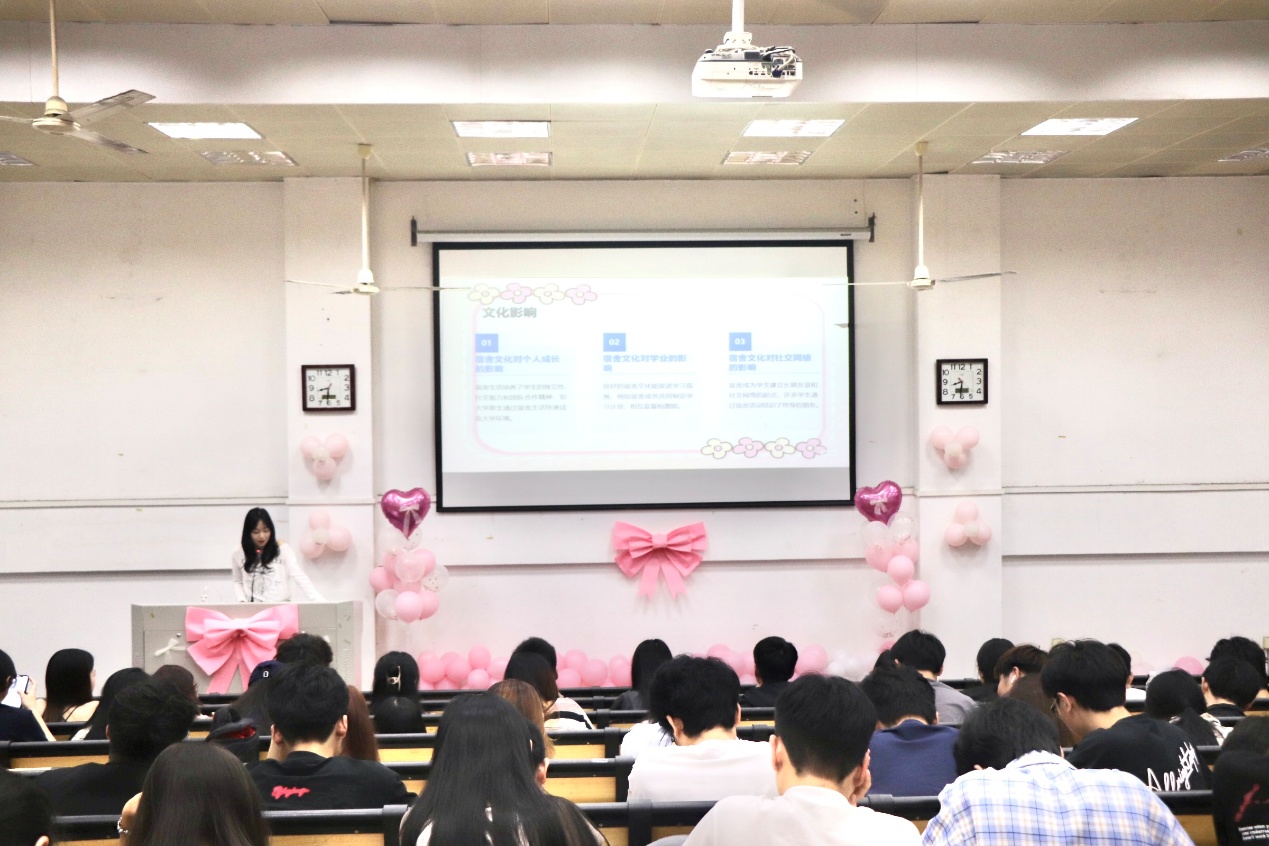 活动流程丰富,依次为宿舍展示、知识竞赛和颁奖仪式三个环节。在宿舍展示环节,各宿舍代表借助PPT讲解,详细介绍宿舍成员、装扮创意及特色舍规,充分展现当代大学生独特的创意与积极的生活态度。知识竞赛环节备受瞩目,分为知识问答和知识速答两部分。知识问答围绕学生宿舍规范和学生手册设置题目,检验同学们对校园规章制度的熟悉程度;知识速答以中国革命历史基础知识为内容,考验同学们的知识储备与反应能力,现场竞争激烈。