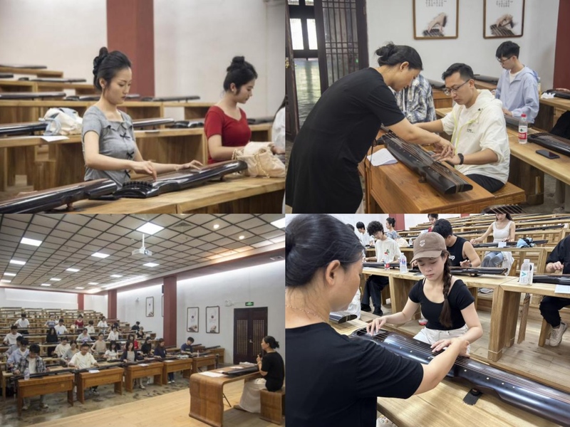 龙人古琴研究院讲师系统讲授了古琴起源、记谱法、与文人艺术的渊源及海外传播历程,为学生展开一幅立体的古琴文化画卷。讲师现场演奏竹林七贤阮籍所作的《酒狂》,以指尖流淌的旋律让学生直观感受古琴艺术的独特魅力。
