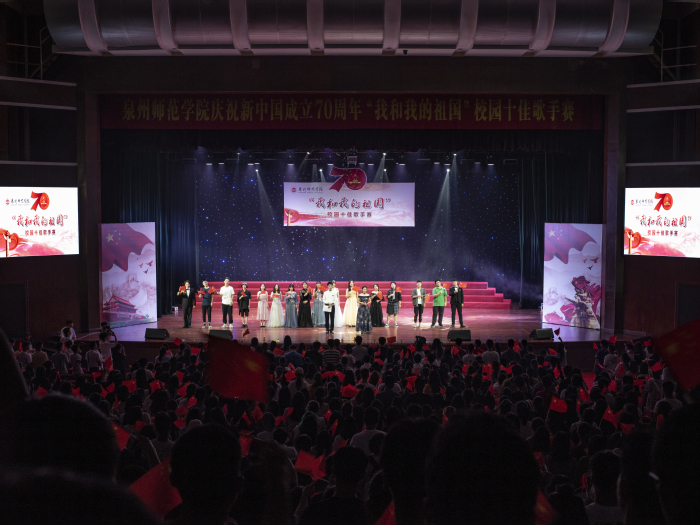 新时代,新青年,新征程。经过激烈的初赛角逐,最终来自各二级学院的14名选手脱颖而出,进击总决赛。同学们以一首首爱国励志歌曲共同抒发爱国情怀,唱响时代心声,向祖国母亲告白最真的赞美,最深的祝福。一首《改变自己》号召广大青年学生应在最美的时光坚定理想信念,用奋斗擦亮青春最亮丽的底色;一首《不忘初心》唱出青年学生牢记初心与使命,在实现中国梦的生动实践中放飞青春梦想书写人生华章的心声;一首《仰望星空》道出青年学生要以科学家钱学森先生为榜样,胸怀祖国,以梦为马,终有一天也能和他一样走近自己的星空,在奋斗的青春中实现梦想的铮铮誓言……一首首婉转动听、慷慨激昂的歌曲唱响同学们的爱国情怀,展现泉师学子的青春风采。风格各异的选手凭借扎实的唱功、美妙的歌喉感染着观众的心灵,为观众献上了一场视听盛宴。