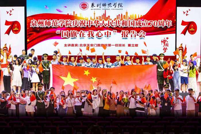 在全国上下喜迎中华人民共和国成立70周年之际,9月28日上午,北京天安门国旗班首任班长、《国旗法》国旗知识神州行组委会主任董立敢同志应邀莅临开云作“国旗在我心中”主题教育专题报告。校党委副书记林伟出席报告会。校党委宣传部、学工部、校团委相关部门负责人,各二级学院学生代表以及校国旗仪仗队参加本次活动。