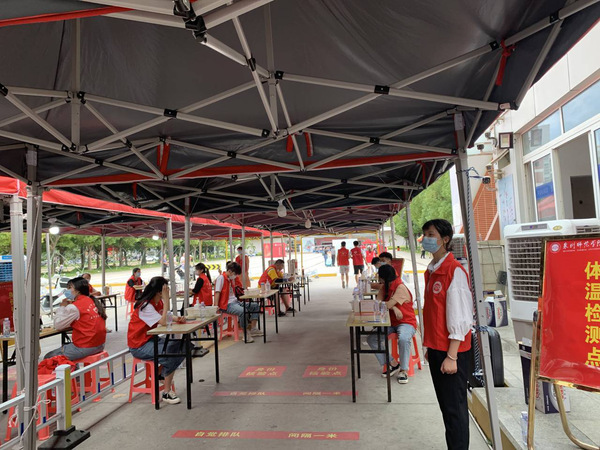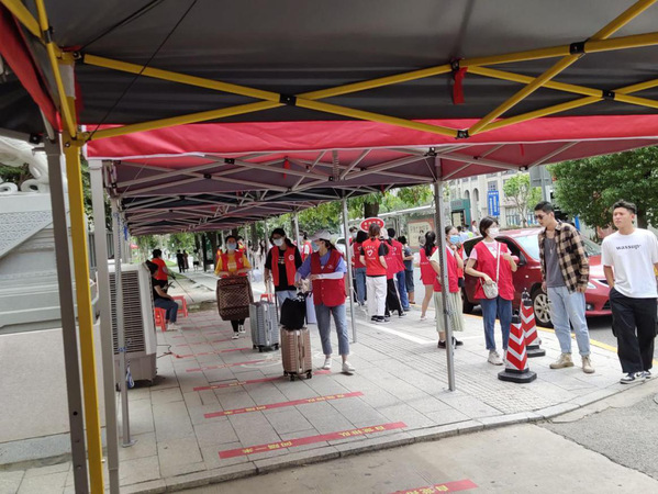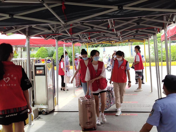 由于常态化疫情防控的特殊时期,今年所有的家长都不能跟随学生入校。为了消除新生和家长们的顾虑和不安,学校组织了近500名志愿者提供暖心入学服务。