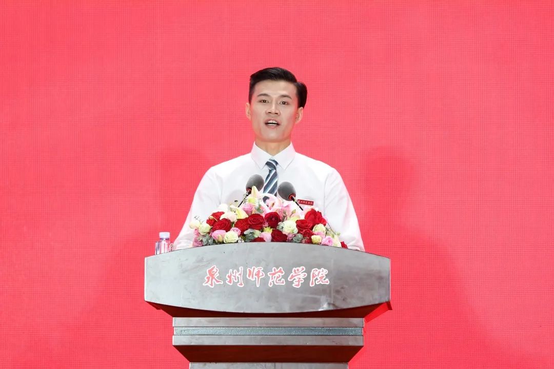 教师代表、南开大学博士后、第二届福建省高校教师教学创新大赛二等奖获得者、教育科学学院副院长邵华教授寄语毕业生,希望他们要常怀感恩之心,对支持和帮助自己走到今天里程碑的所有人心怀感恩;要科学应对压力,努力在压力事件中寻找意义,努力在日常生活中发现美好。勉励同学们要找到自己与众不同的优势和特长,做眼中有光芒、脑中有认知、心中有责任的新时代中国青年!