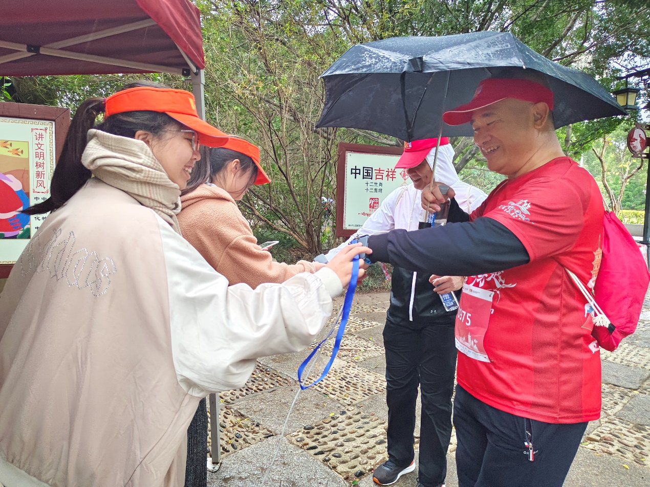 活动开始前,志愿者们便做好了充分的志愿服务准备工作,并在活动前期接受了专门的志愿服务培训。在今天的活动中,志愿者们早上6:30从学校出发,第一时间到达各点位,并从早上8:30一直持续到下午16:30全程跟进,为徒步者在各点位提供志愿服务。志愿者们手中握着打卡器,在打卡处见证着每一位活动参与者坚持不懈的徒步运动,所盖下的章是每一位参与者荣誉的象征,同时尽己所能地帮助各位活动参与者。