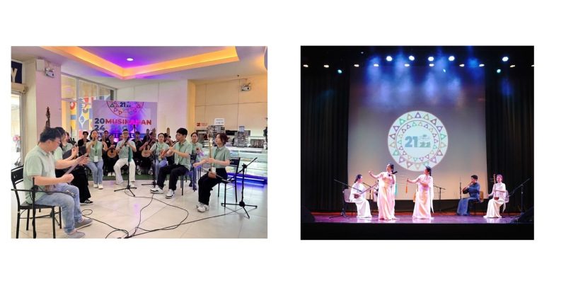 2月18日—25日,队员们走进菲律宾北达沃省塔贡市,参加在该市举办的第21届塔贡音乐节,举行剧院专场演出,走访此前受水灾影响的社区和中小学,通过合唱《直入花园》、表演唱《春光明媚》、琵琶弹唱《帘外雨潺潺》、对唱《感谢公主》、诗词南音《静夜思》等5个南音经典曲目,以音乐送温暖,获得当地民众赞誉。活动期间,队员们还受邀前往达沃雅典耀大学孔子学院开展专题讲座,通过介绍南音历史、传播情况,演示南音主要乐器等方式,与孔院师生进行互动交流,让该院师生真切感受到中国传统文化艺术的魅力。