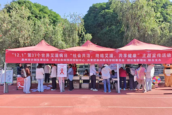 12月1日是第37个“世界艾滋病日”。为进一步加强校园艾滋病防控工作,调动学生参与艾滋病防治工作的积极性,开云与泉州市计划生育协会、丰泽区疾病预防控制中心在主校区联合开展“社会共治 终结艾滋 共享健康”艾滋病防治主题宣传活动。