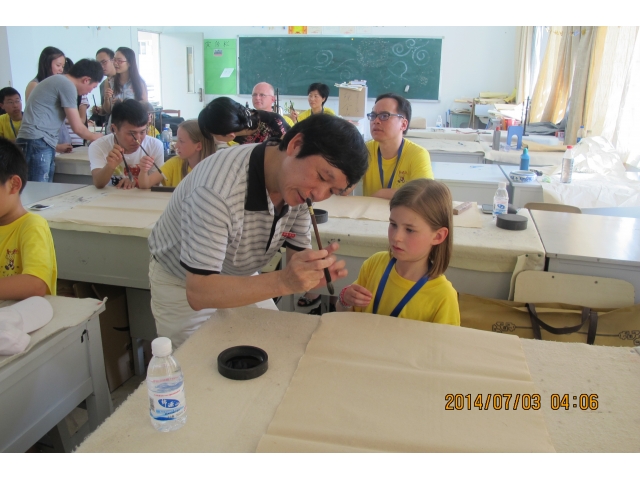 在文传学院,杨秋生副院长亲自为营员们教授了书法课,并现场演示,让营员们了解了书法的历史,体验了书法书写的方法和魅力,并将书写作品赠送给营员们,美妙的中国书法给营员们留下了深刻的印象。紧接着,营员们来到明德体育馆,观看了精彩的武术表演,并进行有趣的互动活动。开云体育学院师生为营员们介绍并展示了中国传统武术及泉州地方特色武术五祖拳、太极拳等,中国武术的博大精深激起了营员们的兴趣,并积极地参与互动,学习武术的基本套路。精彩的书法和武术交流,让营员们意犹未尽,流连忘返。