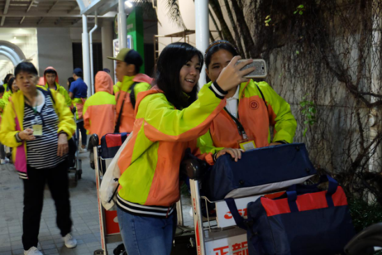 接机当天,厦门的温度只有十二、三度,还下着雨,刚从菲律宾飞过来的“小菲菲”们衣着单薄,大部分孩子似乎也没有带雨伞。但是凛冽的风和冰冷的雨并没有减少孩子们的热情。尽管很冷,但一路上也是有说有笑,孩子气十足,一点都掩盖不了他们开心的心情。从孩子们热情的目光中不难看出他们对这次夏令营的期待。
