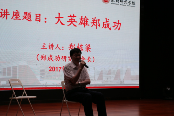 2017年5月14日上午,文学与传播学院特邀泉州郑成功研究会会长郑栋梁先生为菲律宾华裔青少年学中文夏令营的师生们讲述民族英雄郑成功。活动在俊秀演播厅进行,由谢英院长主持。