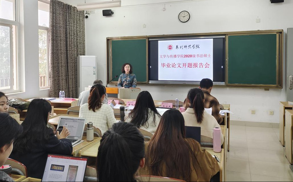 12月20日,我院召开2020级美术领域(书法方向)硕士毕业论文开题报告答辩会。诚邀福建师范大学朱以撒教授为本次开题报告会评审组长,我院研究生部黄鸿琼教授、副院长杨秋生副教授、黄志强教授、王守民副教授、黄立成副教授、余智鸣博士、杨庆博士等老师参加了本次开题报告会。此次报告会旨在保证我院20级研究生毕业论文的写作质量,规范毕业论文的撰写过程。