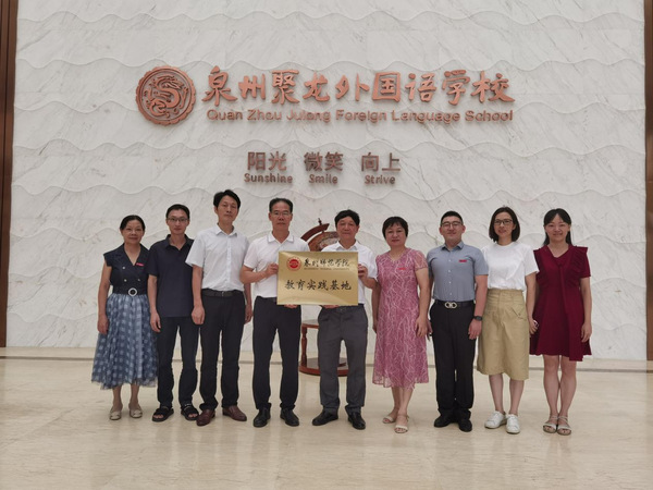 为了更好地推进一流专业建设,落实学院“访企拓岗促就业”的工作部署,文传学院分管本科教学工作副院长杨秋生,中文系主任王伟、书法系主任王守民、中文系分管实习实训工作副主任李莉、学院教学科研办陈明丽老师以及书法骨干教师林振宇,近日前往泉州聚龙外国语学校,为双方共建“汉语言文学专业教育实践基地”挂牌,并开展“访企拓岗促就业”调研活动。泉州聚龙外国语学校余恺庶校长热情接待杨秋生副院长一行。