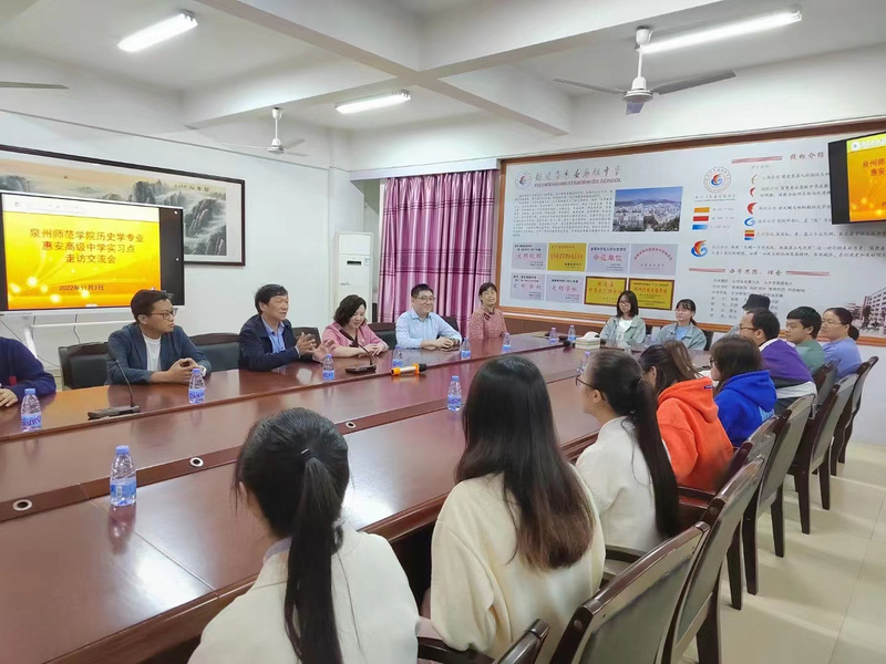 为了更好地落实师范专业认证与一流专业建设的指标要求,支撑教育硕士专业学位研究生授权点(培育)创建,文传学院分管本科教学工作副院长杨秋生,校实习实训中心副主任邓秀勤,中文系主任王伟、副主任李莉,历史系主任刘智豪,教学科研办副主任刘芸芸于11月3日下午前往惠安第二中学、惠安嘉惠中学、惠安高级中学、聚龙外国语学校,看望校友及实习学生,并开展福建省本科高校教育教学改革研究项目(FBJG20210251)、开云kaiyun官网新文科研究与改革实践项目(2021XWK010)等项目的调研活动。