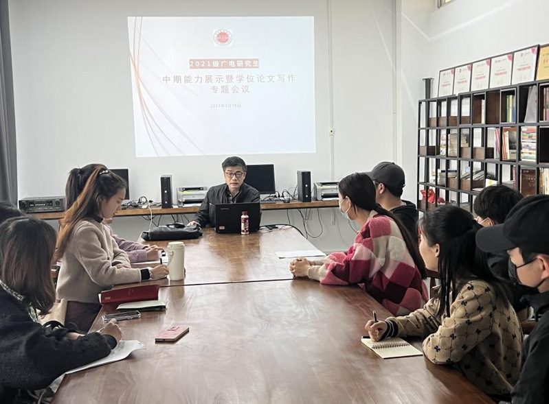 适逢2021级广电研究生开题汇报结束后中期能力展示与学历论文写作的关键时期,根据全国培养广电艺术硕士的指导要求,保证中期能力展示与学位论文工作的顺利开展,3月16日下午,我院召开了2021级广电研究生中期能力展示暨学位论文写作专题会议。会议由张灿荣教授主持,2021级全体研究生参加了会议。