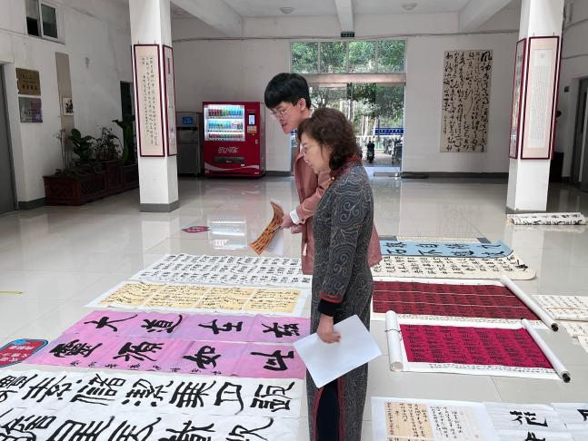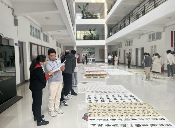 2023年3月9日,我院2020级美术领域(书法方向)艺术硕士研究生毕业创作作品点评指导会在学院一楼大厅开展。由研究生部主任黄鸿琼教授、陈钊副教授、张爱华讲师、陈刚博士、陈艺双博士、余智鸣博士、萧廷钧老师和许雅婷老师等多位书法系老师对学生们的毕业创作书法作品进行现场点评与指导。
