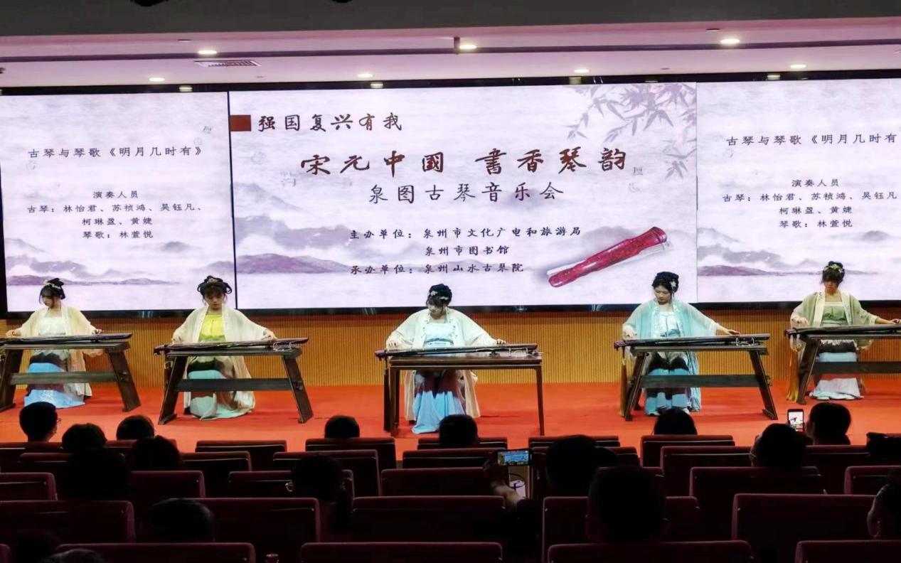 琴课之余,吾有古琴社还参加了由泉州市文旅局、泉州师院文传学院、泉州市图书馆共同主办,吾有古琴社承办的《宋元中国·书香雅集》以及《非遗雅韵·清音颂福》福建省古琴协会巡回音乐会、泉图古琴音乐会等活动,展现了本学期的古琴学习成果。