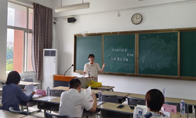 在点评环节,中文应用教研室主任张婉霜博士代表评审团队首先肯定参赛选手在教具制作、课件运用、课堂互动、临场应对等方面的出色表现,并从教学设计的逻辑性、教学方法的创新性、教学过程的完整性、教姿教态的感染力等诸多方面对参赛选手及其作品进行中肯细致的到位评点,让在场师生受益匪浅。