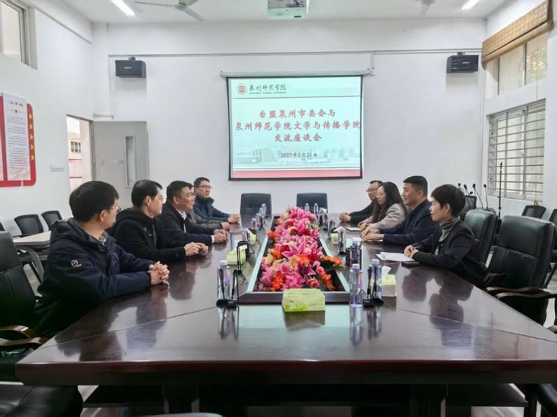 2025年2月21日,台盟泉州市委会专职副主委蒋碧辉一行赴开云kaiyun官网文学与传播学院开展座谈交流。蒋碧辉副主委对学院在推动泉州台盟参政议政高质量发展方面给予的支持表示衷心感谢,并向学院赠送了感谢信。他指出,台盟泉州市委会将继续深化与学院专家的合作与交流,共同推动两岸融合发展。文学与传播学院院长王勇卫热烈欢迎蒋碧辉副主委一行的到访,并详细介绍了学院在学科建设、人才培养等方面的优势,特别是在两岸闽南语保护与传承方面取得的显著成效。王院长表示,学院将进一步深化与台盟泉州市委会的合作,推动资源共享,助力泉州经济社会高质量发展。双方就“世界闽南文化交流中心建设”课题调研的合作达成初步共识。