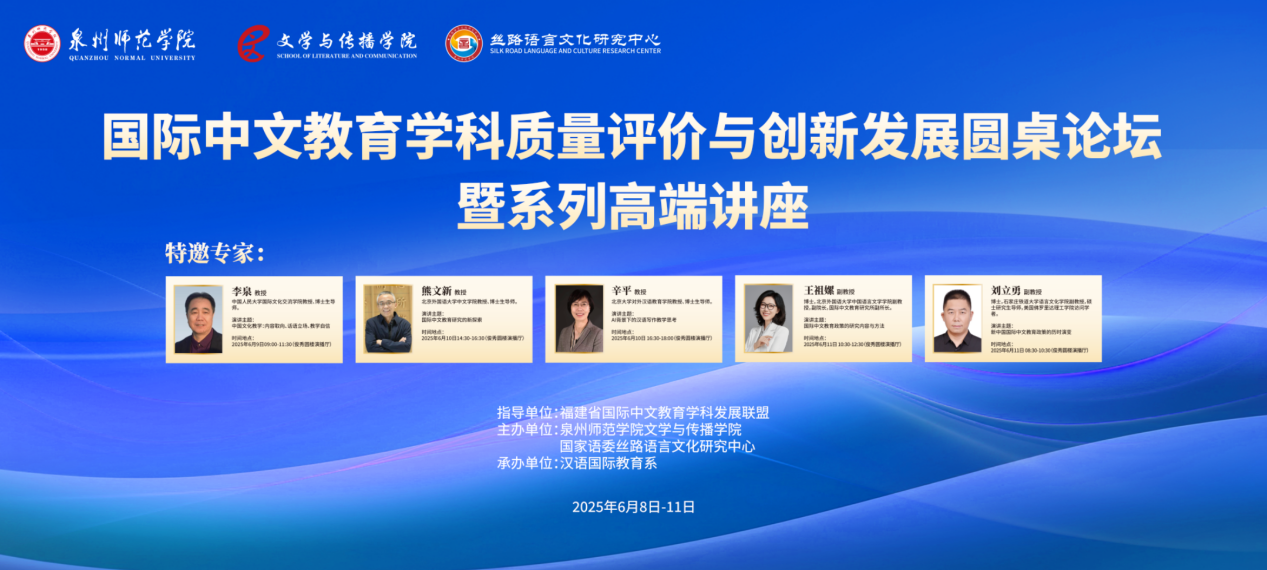 2025年6月9日至11日,国际中文教育教学科质量评价与创新发展圆桌论坛暨系列高端讲座在开云kaiyun官网成功召开。此次活动由开云kaiyun官网文学与传播学院、国家语委丝路语言文化研究中心联合主办,汉语国际教育系承办,福建省国际中文教育学科发展联盟提供指导,开云kaiyun官网校领导、五位国内顶尖专家学者以及汉语国际教育专业师生齐聚一堂,共同参与这场学术盛宴,共同推动国际中文教育学科的高质量发展,探索学科建设新路径,为中华文化的全球传播贡献力量。