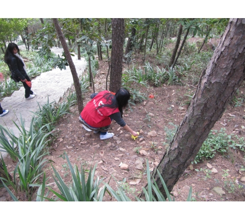 三月不仅迎来了俏春,也迎来了“学雷锋”活动。我院青年志愿者积极响应此次环保活动。活动共分为十三组,每组准备一个大垃圾袋,每个成员自备一个小垃圾袋。志愿者们发扬不怕脏、不怕累的精神,认真细致的投入紧张又忙碌的环保活动中,红色的身影穿梭其中,使森林的韵味更加浓厚,使桃花美景显得更加鲜艳夺目。此外,志愿者们若看到有游客想采摘花朵,都会主动上前进行劝解,游客们也纷纷表示理解。