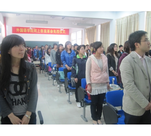 在中国传统节日清明节即将来临之际,4月2日中午,外国语学院在俊秀外文楼508室开展以“网上祭奠英魂,传承革命精神”为主题的网上祭奠先烈活动。学院党总支书记、全体学生党员及学生主干参加了仪式。