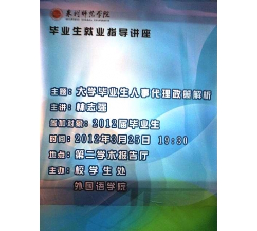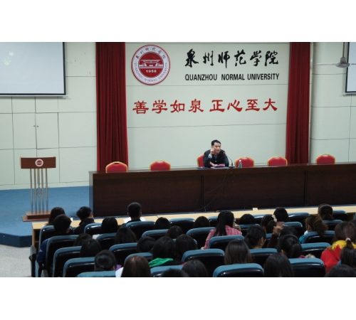 林志强主任以大学毕业生人事代理政策解析为主题,就毕业生们关心的人事代理问题进行了详细指导与分析。林主任首先分析了当前大学生的就业形势,接着以将人才留在泉州为企盼,结合泉州各事业单位和企业的大致情况,结合学生个人诉求与社会产业需求,为毕业生们进行就业指导。最后,林主任介绍了我国尤其是我市当前的就业政策,如泉州就业服务五大计划、“三支一扶”政策等,引导毕业生树立正确的就业观,并以“感恩、技能、自立、合作、视野”与毕业生们共勉。林主任强调大学生应树立温总理所指示的就业自信心,学会感恩父母、老师、母校,学会考量找工作不只是薪水问题,更关系到个人尊严与安全。