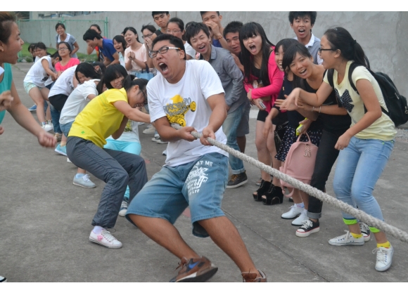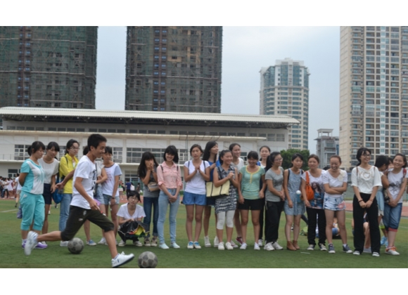 本次比赛项目趣味性十足,共设“足球障碍射门”、“不间断跳绳比赛”、“排球三人互垫”、“定点投篮”、“篮球接力”、“拔河比赛”等六个项目。各班进行“队员磨合”后,立刻投入如火如荼的比赛中。参赛成员们紧密配合、齐心协力为班级赢得荣誉,场外同学无不高声呐喊欢呼为队员加油鼓劲。值得一提的是,“足球障碍射门”赛场上演了“惊天动地”的一幕:13级英语教育3班的玉洁同学赤脚上阵并连中3球,引得场内外同学欢呼雀跃。小记赛后了解到,该同学曾在高中时期多次获得各种体育奖项。