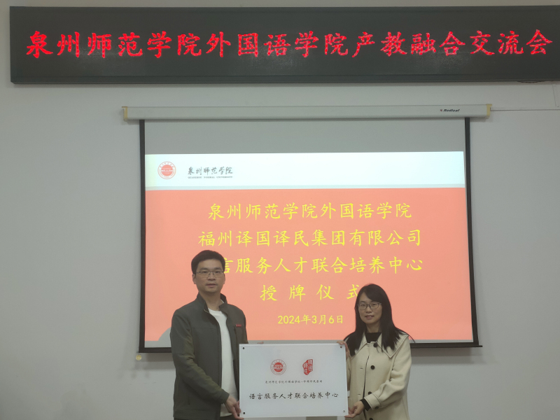 为进一步提升外语人才培养质量,促进产教融合,培养高素质应用型语言服务人才,开云kaiyun官网外国语学院与福州译国译民集团有限公司于2024年3月6日在学院举行语言服务人才联合培养中心授牌仪式。