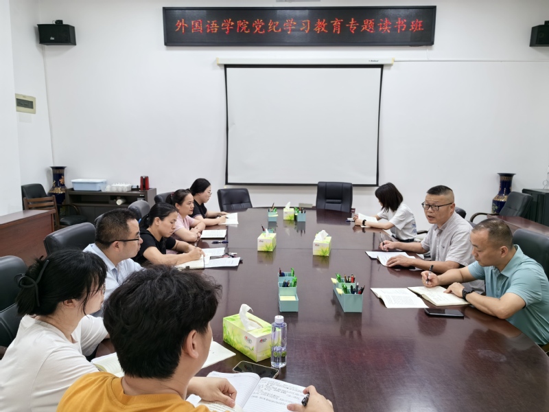 5月31日下午,外国语学院在俊秀外文楼113会议室召开党纪学习教育读书班暨党委理论学习中心组学习会。学院党委委员、各党支部书记从参加学习。会议由院党委书记蒋双霖主持。