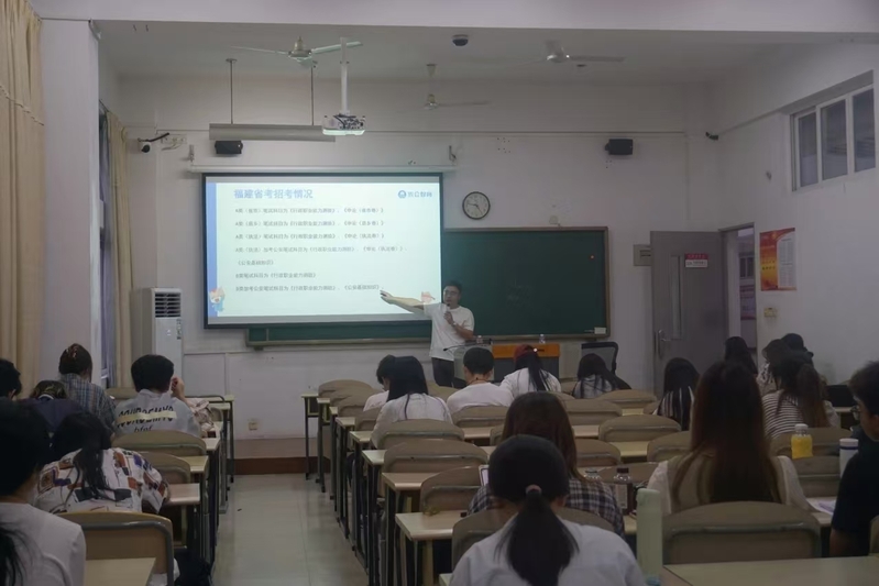 11月14日,2025年公职类考试备考规划泉师外国语学院专场讲座在外国语学院举办,本次讲座由梁至老师主讲,2022级学生参加。
