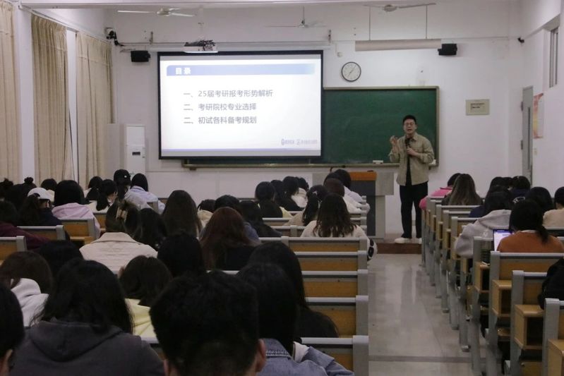 讲座上,主讲人通过理论知识与实例剖析相结合的方式,详细解析了制定考研规划的依据,并且提出了具体的备考建议,为学生们提供决策参考。