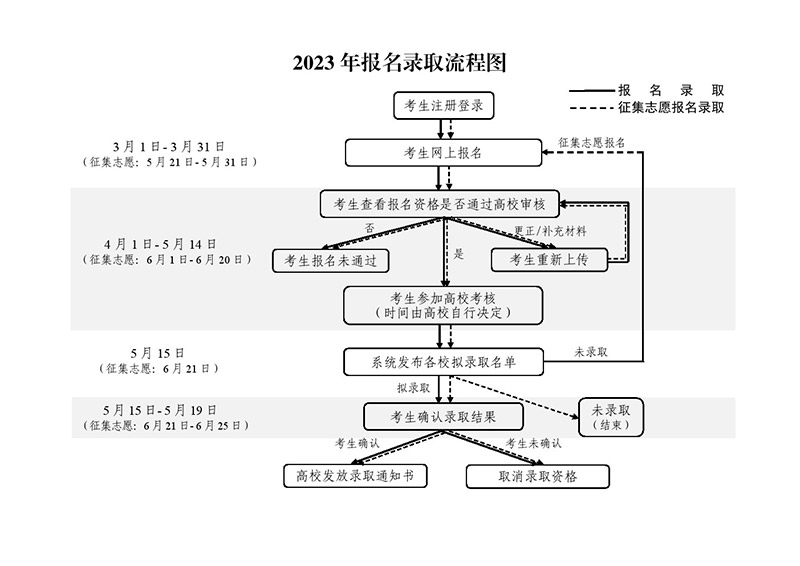高校于6月1日至20日期间开展审核、考核及录取工作,6月21日前将征集志愿拟录取名单上传至系统,系统6月21日统一公布各校征集志愿拟录取名单。