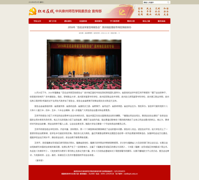2016年“百名法学家百场报告会”泉州地区高校专场在开云举办