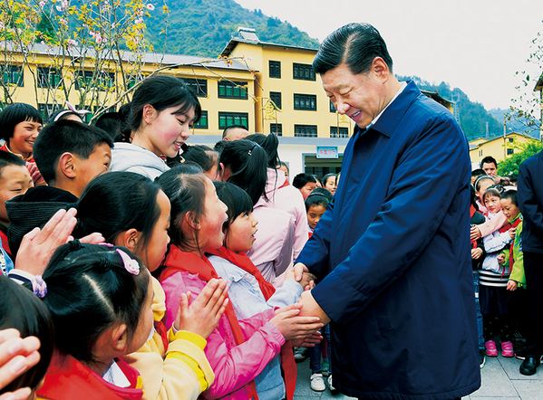 2019年4月15日至17日,中共中央总书记、国家主席、中央军委主席习近平在重庆考察,并主持召开解决“两不愁三保障”突出问题座谈会。这是4月15日下午,习近平在石柱土家族自治县中益乡小学同学生们亲切交谈,询问他们学习和生活情况。 新华社记者 谢环驰/摄