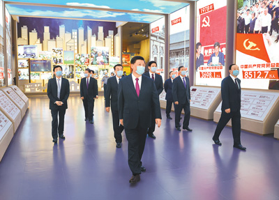 ■ 党的历史是最生动、最有说服力的教科书。我们党的一百年,是矢志践行初心使命的一百年,是筚路蓝缕奠基立业的一百年,是创造辉煌开辟未来的一百年。回望过往的奋斗路,眺望前方的奋进路,必须把党的历史学习好、总结好,把党的宝贵经验传承好、发扬好,铭记奋斗历程,担当历史使命,从党的奋斗历史中汲取前进力量。要教育引导广大党员、干部通过参观学习,更加自觉地不忘初心、牢记使命,增强“四个意识”,坚定“四个自信”,始终在思想上政治上行动上同党中央保持高度一致,坚定理想信念,学好用好党的创新理论,赓续红色血脉,发扬光荣传统,发挥先锋模范作用,团结带领全国各族人民,更好立足新发展阶段、贯彻新发展理念、构建新发展格局,全面做好改革发展稳定各项工作,汇聚起全面建设社会主义现代化国家、实现中华民族伟大复兴中国梦的磅礴力量