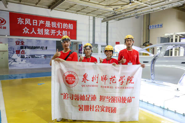 践队师生在东风日产焊装车间