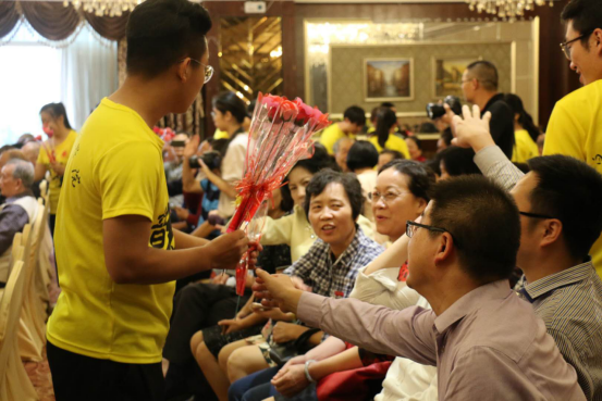(献上鲜花表达学子们的浓浓感恩之情)