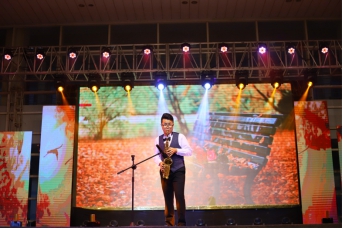 我院研究生王鑫同学带来萨克斯独奏《秋叶》——动人的旋律溢出淡淡忧伤的音符,配上唯美的背景,让在场的观众沉浸在这段缓缓流动的美妙音乐中。