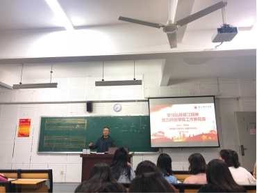 课上,蒋双霖书记就“晋江经验”向大家普及了闽南历史文化及晋江精神内涵,让大家了解闽南人爱拼敢赢的精神,向大家讲解什么是“晋江经验”的“六个始终坚持”和“处理好五大关系”。蒋书记指出,新时代的在校大学生,感受着祖国日新月异的变化,学校“三步走”战略的扎实实施,青春黄金阶段的奋斗,更应该要抓住时代机遇,牢记时代使命,努力做到善学、正心,在学习工作、志愿服务、个人修养等方面充分展现自己的抱负和激情,要敢于做时代的先锋,拒绝做时代的“看客”“过客”“游客”,要敢于做时代的主人,拒绝做时代的“懒人”“客人”。最后,蒋书记希望全体同学继续发扬“晋江精神”,敢拼敢创敢赢,勇于担当,励志勤学,在激情奋斗中绽放青春光芒,在时代浪潮中书写精彩人生。