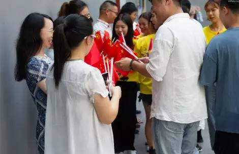 一曲终了,紧接着又一首饱含深情、优美动人、真挚朴实的歌曲《我和我的祖国》响至耳边:“我和我的祖国,一刻也不能分割……”表达了老师学生们对祖国深深的爱,也对即将到来的建国70周年致以祝福与敬意。在动听的歌声里,学生们向老师献上小国旗,现场的气氛开始变得轻松欢快,老师们向学生走去一起合唱《我和我的祖国》,为祖国献上祝福。歌曲结束,学生们向老师表达自己心底的感谢和祝福,活动现场吸引了众多同学驻足观看,大家纷纷拿起手机,一边合唱,一边定格下这温馨美好的瞬间。