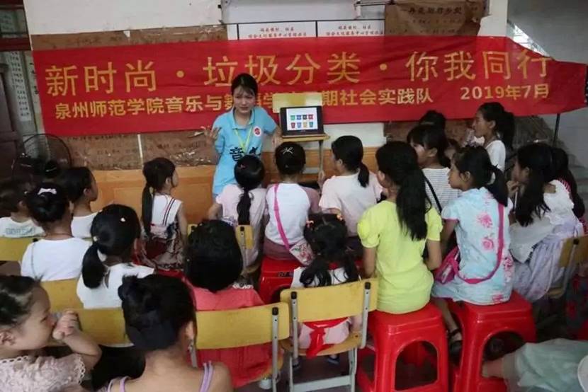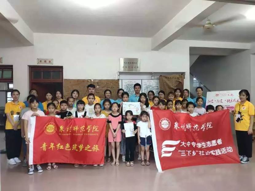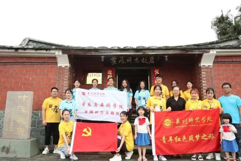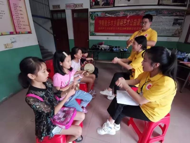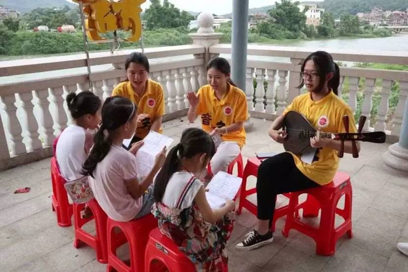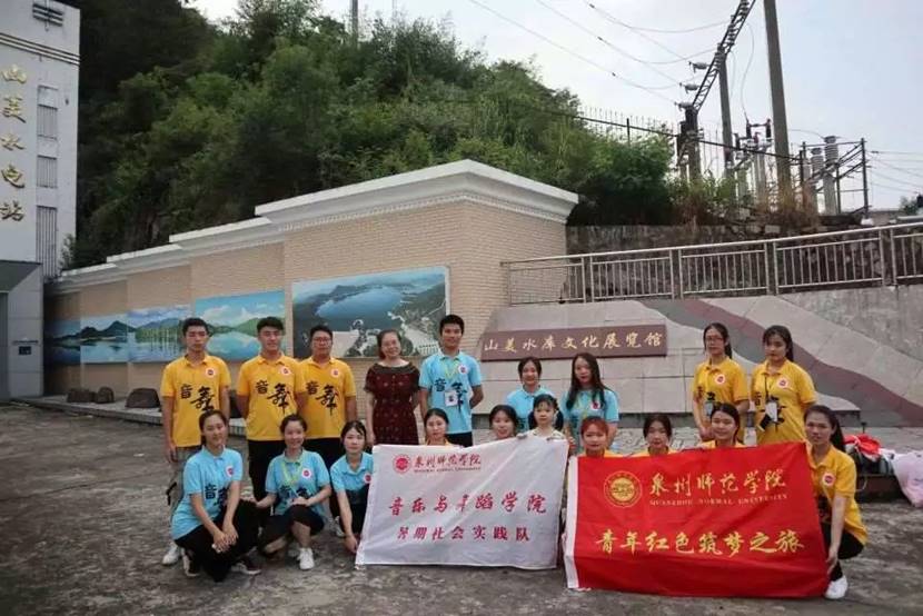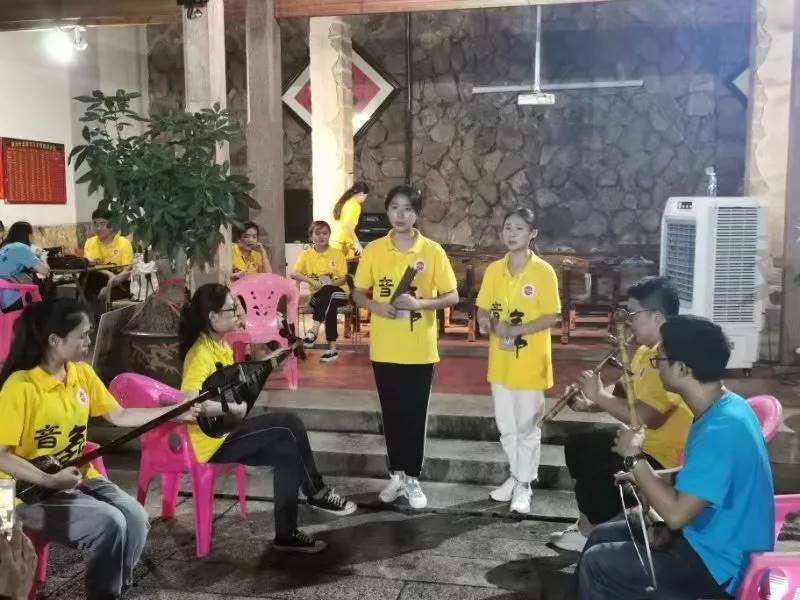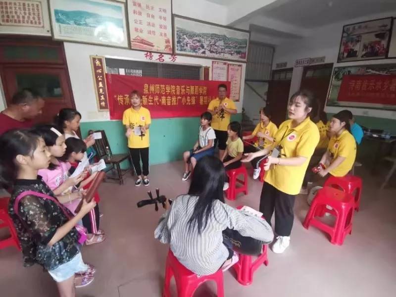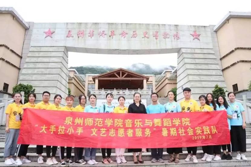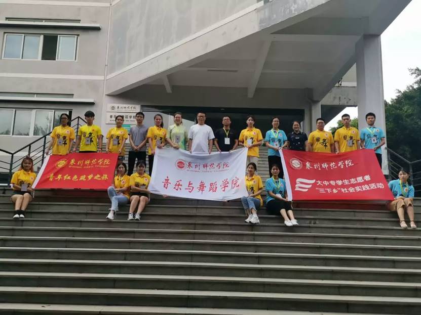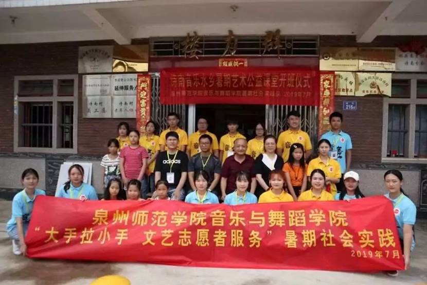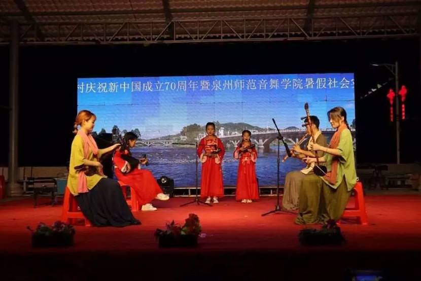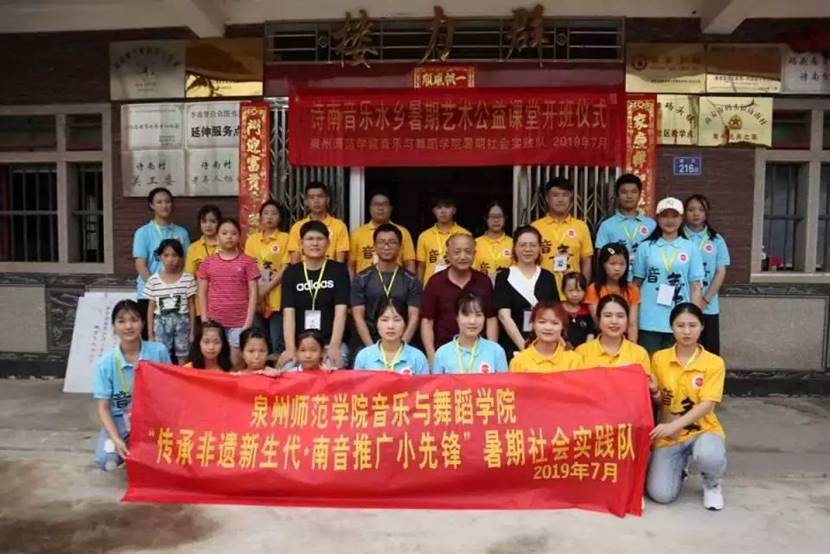 为深入学习贯彻习近平新时代中国特色社会主义思想,学习贯彻党的十九大和十九届二中、三中全会精神,引领教育广大青年学生在切实感受新中国成立70周年取得的巨大成就中增强“四个意识”、坚定“四个自信”、做到“两个维护”,在志愿服务中增强责任感和使命感,在社会实践中受教育、长才干、作贡献,以实际行动投身打赢脱贫攻坚战,投身乡村振兴战略实施,勇做担当民族复兴大任的时代新人。7月6日—7月13日,泉州师院音乐与舞蹈学院团委会、学工办组织了“传承非遗新生代·南音推广小先锋”与“大手拉小手·文艺志愿服务”两支暑期社会实践队奔赴南安市码头镇诗南村开展为期八天的社会实践活动,本次社会实践队成员由1名研究生和18名本科生组成。活动内容包含艺术公益课堂、南音社拜馆、参观革命历史博物馆、参观山美水库、各名胜风景区南音公益快闪、环保宣传、预防艾滋病宣传、汇报演出等丰富多彩的实践内容。实践队员们通过本次社会实践活动获得了丰富的教学、实践经验,身体力行地传承世界非遗、中华优秀传统文化——南音,并创新性地推广南音,积极运用所学专业知识影响着新一代南音文化传承人;丰富多彩的音乐课堂和公益宣传活动大大助力了诗南音乐水乡的文化建设、为新农村建设、乡村振兴增光添彩。
