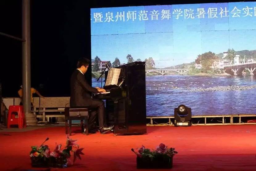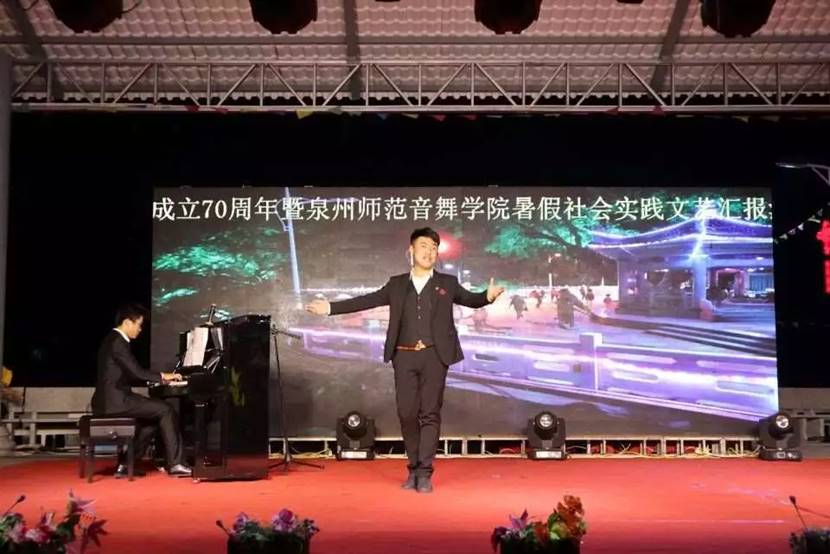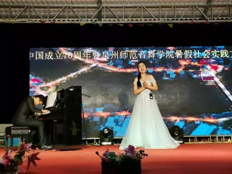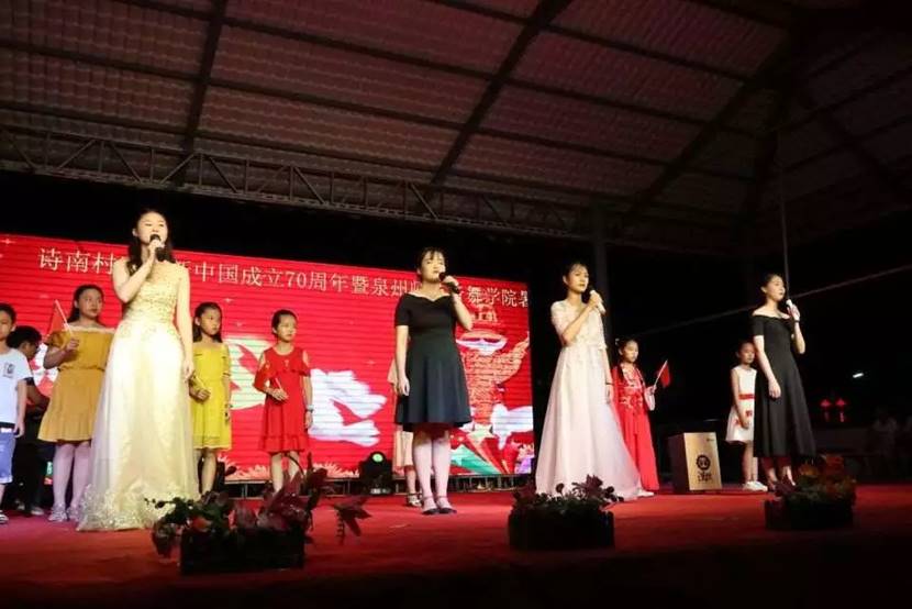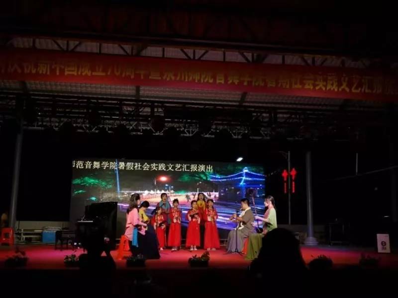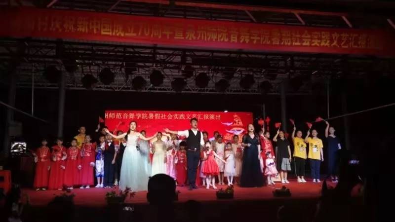 7月13日晚,由诗南村村委会和开云kaiyun官网音乐与舞蹈学院“三下乡”暑期社会实践队共同举办的“诗南村庆祝新中国成立70周年暨泉州师院音舞学院暑期社会实践汇报演出”在诗南村文体中心大广场隆重举行。