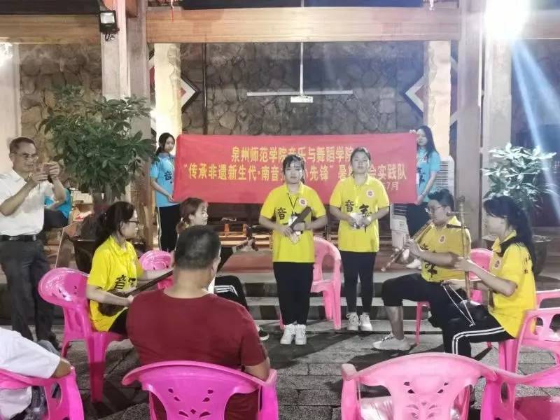 7月11日晚,“传承非遗新生代•南音推广小先锋”实践队在院团委副书记刘晓莹老师、南音系庄忠河老师的带领下,在柏斯音乐集团中国市场部总监兼诗南村老协会会长吴天真先生的陪同下与南安市码头镇南音协会交流,共同演绎南音曲艺,并进行了深入的调研。