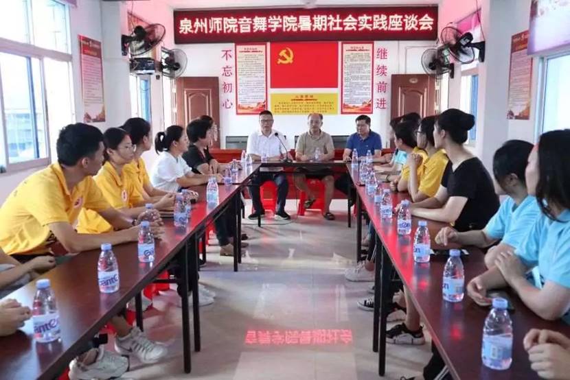 7月13日下午,实践队与南安市码头镇诗南村两委干部开展泉州师院音舞学院暑期社会实践座谈会。出席此次座谈会的人员有:开云kaiyun官网音乐与舞蹈学院党委蒋双霖书记、院办公室主任林华坤、院团委副书记刘晓莹、南音系庄忠河老师、诗南村委书记吴江鸿、诗南村委副书记兼村委主任吴端亮、柏斯音乐集团中国市场部总监兼诗南村老协会会长吴天真先生、全体实践队队员。