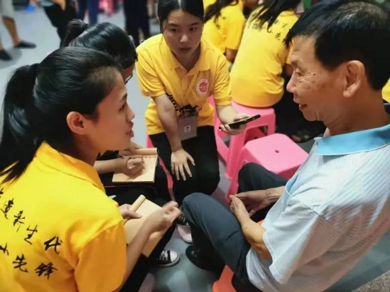 为了最清晰地了解目前南音在码头镇的传承现状,队员们对南音协会的前辈们进行了深入的采访,或举着录音笔侧耳倾听、或拿着笔记本认真记录,在访谈中认真积累调研的基本素材。南音协会的前辈们倾囊相授,现场互动氛围热烈友好。在交流现场,还有数位已经学习了多年南音的小学生,队员们与孩子合作表演了南音的经典曲目《元宵十五》,深入采访了孩子们目前学习南音的现状,并为孩子们在学习中遇到的困难答疑解惑,同时还现场教授孩子们南音下四管中的双铃、小叫、四宝、响盏等小乐器。通过本次会唱和调研,队员们见识了码头南音协会成员们精湛的技艺,丰富了对民间南音演绎的新认识,同时也对南音目前在码头镇的传承现状有了更加具体的认识,为今后更有针对性地推广南音提供了更加明确的思路和方向。