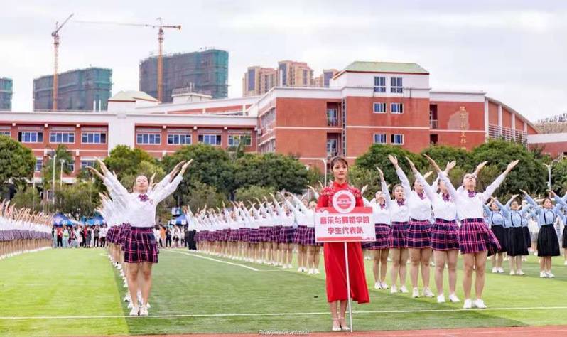 开幕式上,由我院2019级新生组成的方阵身着充满青春活力的院服、手举彩球、步伐规整,喊出了“青春如火,超越自我,音舞最强,非比寻常”的响亮口号,展示出我院学子们团结友爱和自信热情的精神面貌,赢得运动场上所有人的喝彩。入场式后便是精彩的广播操表演,我院参演同学动作整齐划一、刚劲有力,每一个动作都彰显了我院学子的激昂斗志和青春风采。我院舞蹈学专业同学在排舞环节表现突出,用精彩绝伦的舞姿为此次运动会开幕式增添了一道亮丽的风景线。