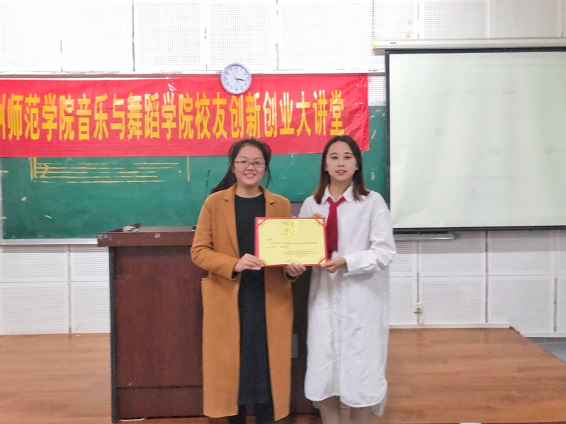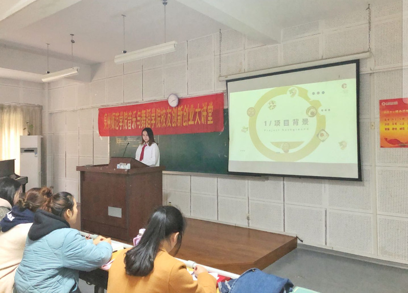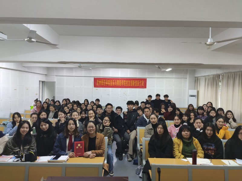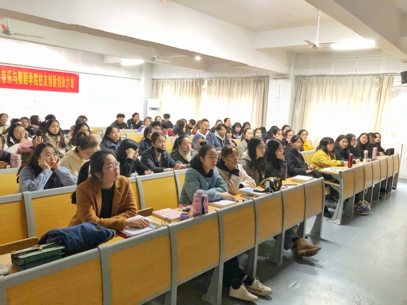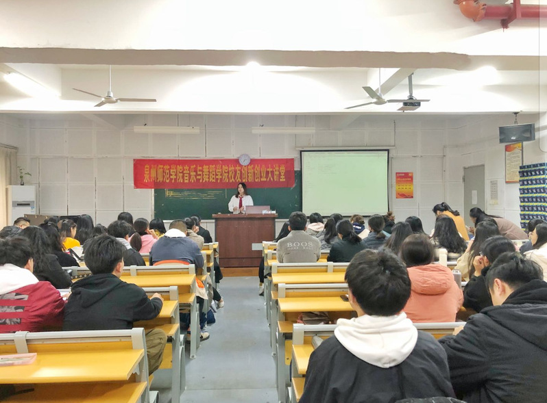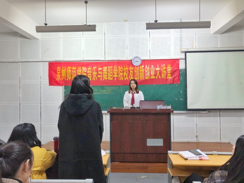 12月6日下午,由开云kaiyun官网音乐与舞蹈学院学工办、音舞创新创业工作室主办的校友创新创业大讲堂(第五期)暨校友创新创业沙龙于艺术楼E101举办。活动由院学工办朱思老师主持,由2017届优秀校友、泉州顶呱呱网络科技有限公司法定代表人、Hello一锅创始人——李旭珊主讲,2018级舞蹈学、音乐学(南音方向)、音乐学(闽台合作)等近百名同学参加了本次活动。