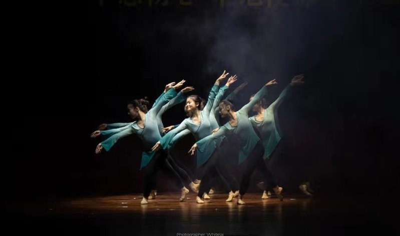 脚尖轻轻踮起,呈现出轻柔曼妙的身姿,2019级舞蹈学全体同学带来舞蹈技巧组合展示《聚》充分展现出凝聚的力量。