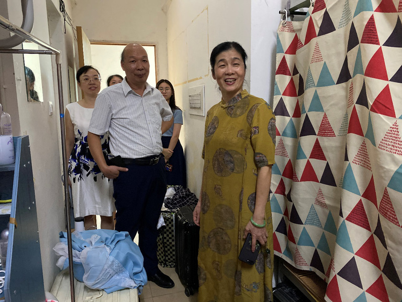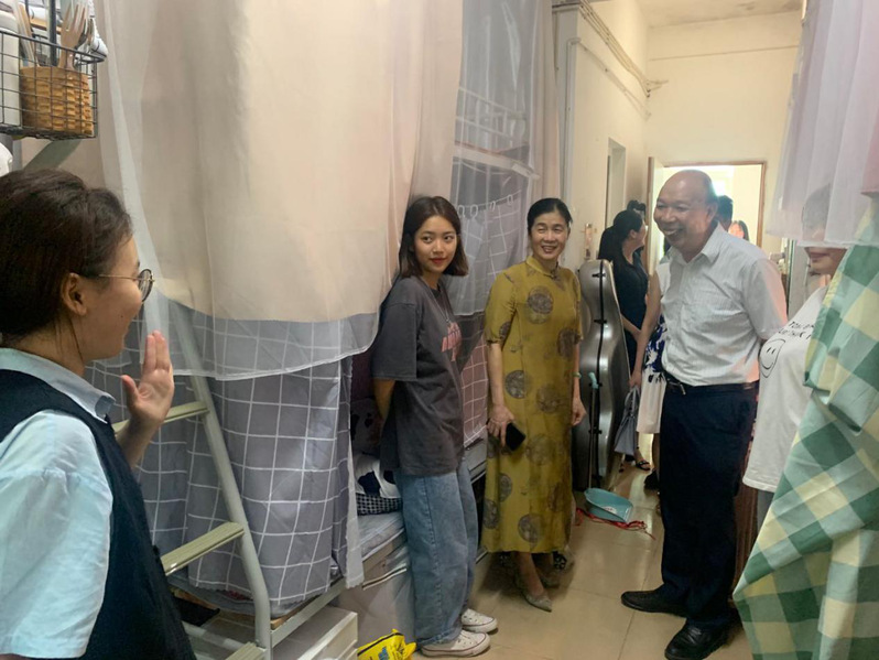 王丹丹院长一行首先表达了对同学们的思念并对大家顺利返校表示热烈的欢迎,走访过程中他们亲切地倾听同学们返校后的切身感受,耐心地了解大家的需求,同时还热心地为同学们排查宿舍安全隐患。此外,他们还特别提醒同学一定要做好宿舍卫生并注意通风,打造一个整洁、卫生、安全的宿舍环境,鼓励同学们养成良好的生活习惯,保持健康的体魄,共同营造安全稳定的校园环境。走访过程气氛融洽,宿舍里传出阵阵笑声。