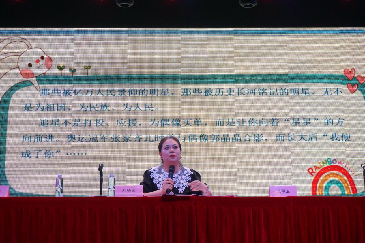 刘晓莹总结了上学期的学习情况,指出学生补考人数有所下降,希望同学们珍惜个人的学习机会,充分认清学生身份,将更多时间和精力投入到学业上。她还以“责任”与“立德树人”为主题,为同学们讲授“开学第一课”。她希望各位同学通过暑期的防疫全过程深刻体会众志成城的力量,学会运用自己的小爱汇聚成大爱,并且要以娱乐明星“塌房”案例为鉴,学会“见贤思齐,择善从之”,做人做事关键要以德为先。她号召在座同学要在滚烫的星河当中寻寻觅觅,寻找到真正属于自己的繁星,只为成为更好的自己。