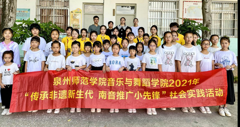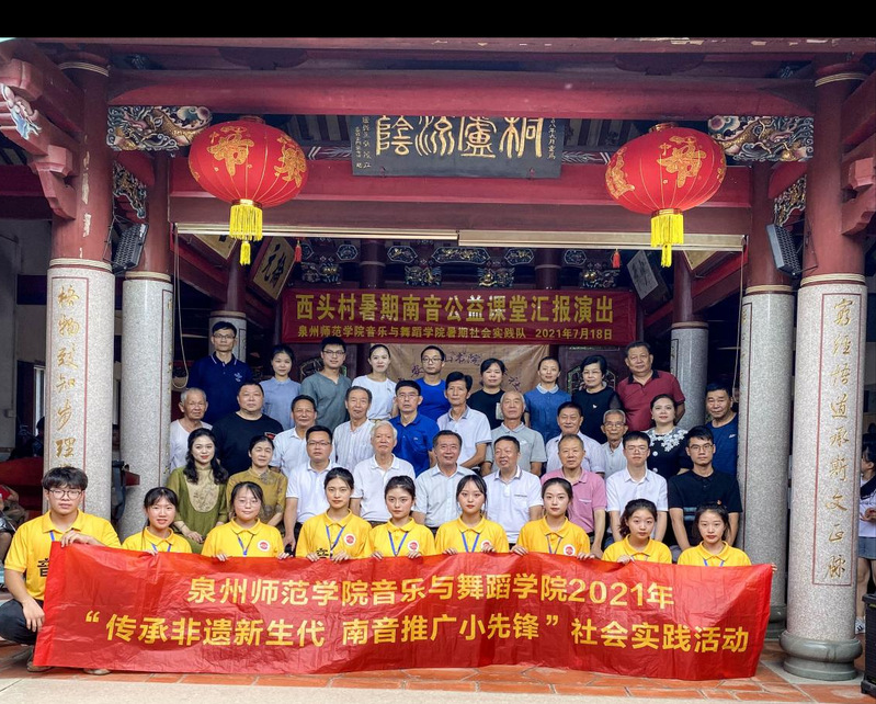 为引领学生在社会实践中受教育、长才干、作贡献,以实际行动投身乡村振兴战略实施,勇做担当民族复兴大任的时代新人,7月13日—7月18日,音乐与舞蹈学院“传承非遗新生代·南音推广小先锋”暑期社会实践队一行12人赴惠安县净峰镇西头村开展为期一周的社会实践活动,本次社会活动包含了南音公益课堂、南音社拜馆、南音公益快闪、环保宣传、校园安全宣传、党史宣传教育、汇报演出等丰富多彩的实践内容。