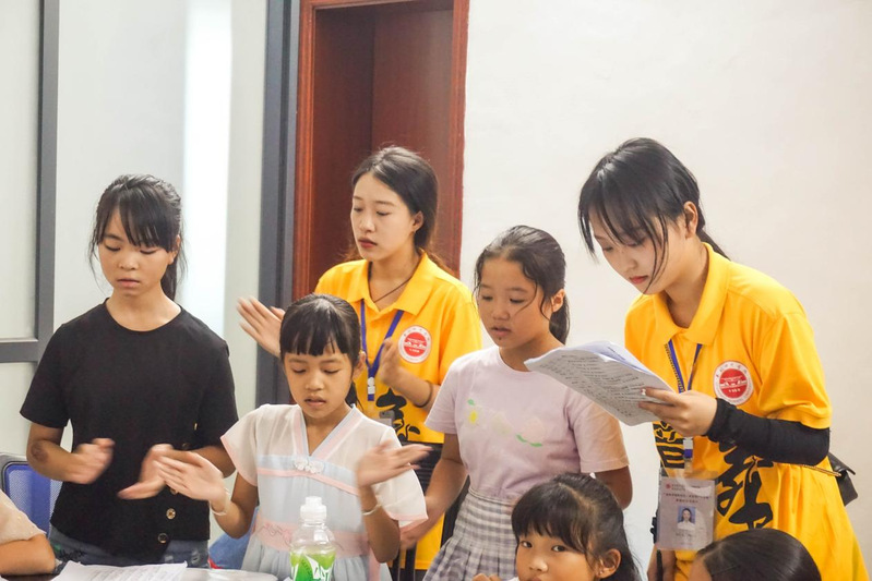 7月18日,实践队指导南音公益班的孩子们一同精心准备了一场南音公益课堂汇报演出,演出开始前由西头村支部书记张钦强与陈恩慧副院长分别致辞,他们共同表达了对本次社会实践活动的肯定与对未来南音协同传承的美好期许。
